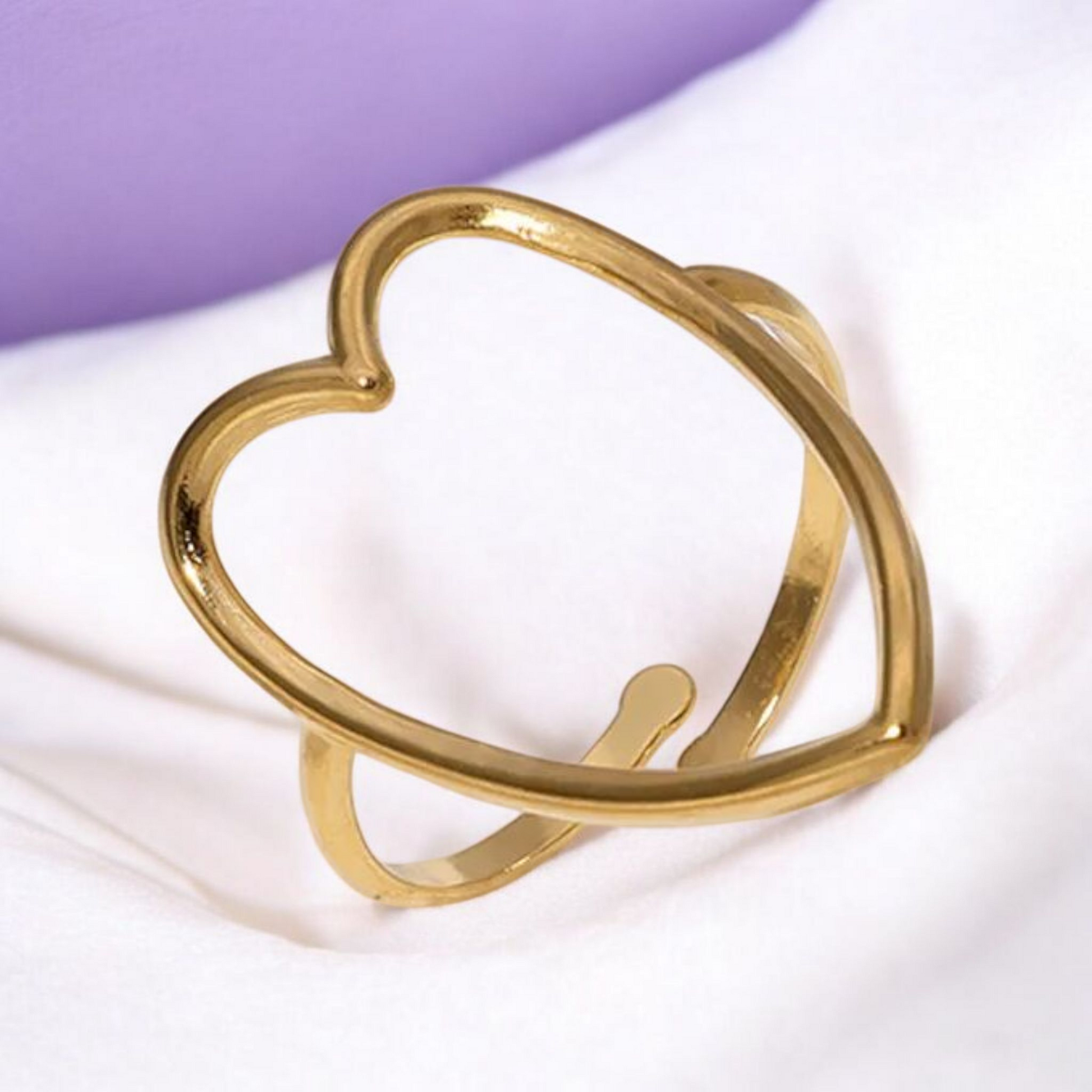 This stunning gold toned heart-shaped ring is the perfect blend of elegance and charm, crafted from durable stainless steel and adorned with luxurious 18Kt gold plating. Its unique design captures the essence of love, making it an ideal gift for someone special or a delightful treat for yourself. The ring's radiant finish and timeless shape ensure it will be a cherished piece in any jewelry collection, effortlessly enhancing any outfit with a touch of sophistication.