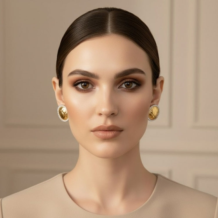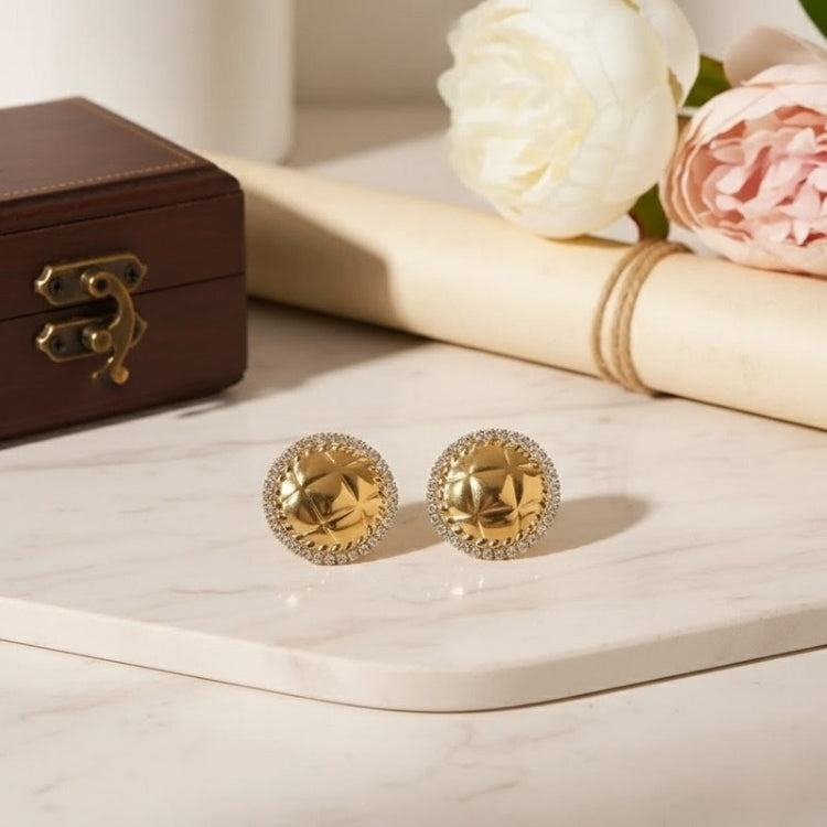 Add a touch of elegance to your jewelry collection with these stunning gold tone stud earrings adorned with sparkling diamonds. Crafted from durable stainless steel and finished with luxurious 18Kt gold plating, these earrings offer both style and longevity. Their classic design makes them perfect for any occasion, whether you're dressing up for a night out or adding a hint of glamour to your everyday look. Treat yourself or surprise a loved one with this timeless accessory that shines bright with every wear.