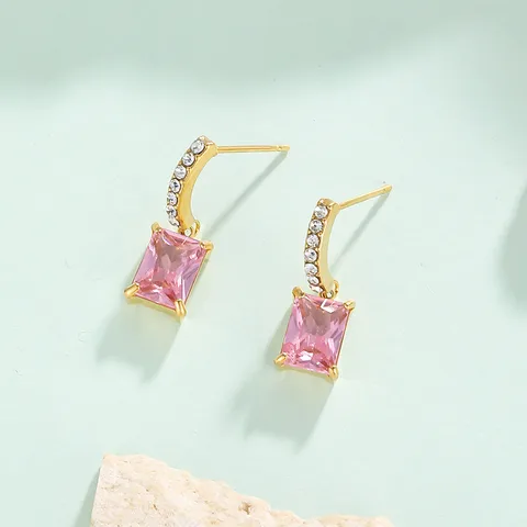 Discover the enchanting allure of our pink crystal teardrop earrings, designed to add a touch of elegance to any outfit. Crafted from durable stainless steel and beautifully plated with 18Kt gold, these earrings offer a luxurious look without compromising on quality. The delicate pink crystals catch the light with every movement, making them the perfect accessory for both casual outings and special occasions. Treat yourself or surprise a loved one with these stunning earrings that effortlessly blend sophistication and charm.