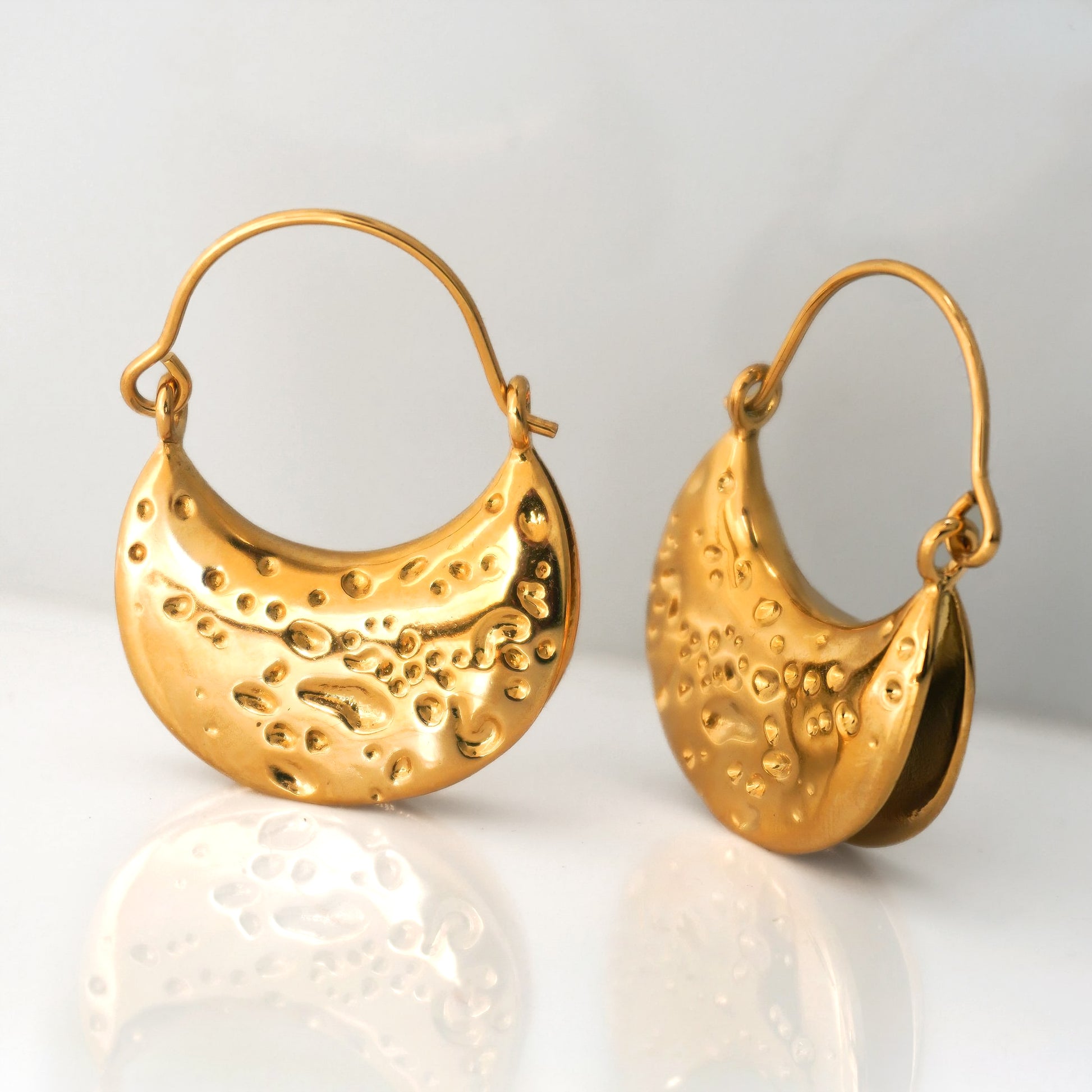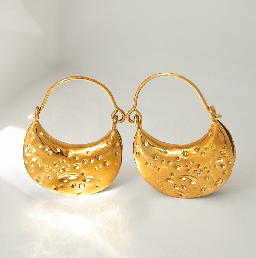 Elevate your accessory game with our stunning gold plated moon earrings, crafted from durable stainless steel and adorned with luxurious 18Kt gold plating. These celestial-inspired earrings are not only lightweight and comfortable for all-day wear, but they also add a touch of elegance and whimsy to any outfit. Perfect for both casual outings and special occasions, these earrings are a must-have addition to your jewelry collection. Shine bright and embrace your inner goddess with these enchanting moon earrings!