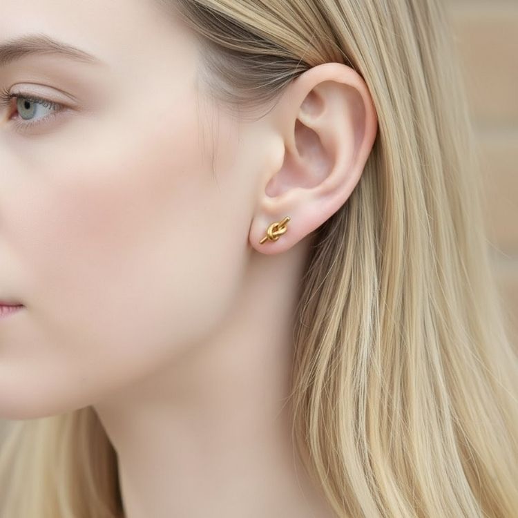 Elevate your accessory game with our stunning gold knot earrings, expertly crafted from durable stainless steel and elegantly plated with 18Kt gold. These earrings feature a unique knot design that symbolizes unity and sophistication, making them the perfect addition to any outfit, whether for a casual day out or a formal evening event. Lightweight and comfortable, they offer a luxurious look without compromising on wearability. Treat yourself or gift them to someone special and let these earrings shine in every occasion.