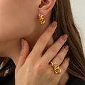 These stunning gold-plated earrings feature a unique twisted design that adds a touch of elegance to any outfit. Crafted from durable stainless steel and finished with luxurious 18Kt gold plating, they offer both style and longevity. Perfect for day-to-night wear, these earrings are a must-have accessory that will effortlessly enhance your jewelry collection. Treat yourself or surprise a loved one with this chic addition that radiates sophistication.
