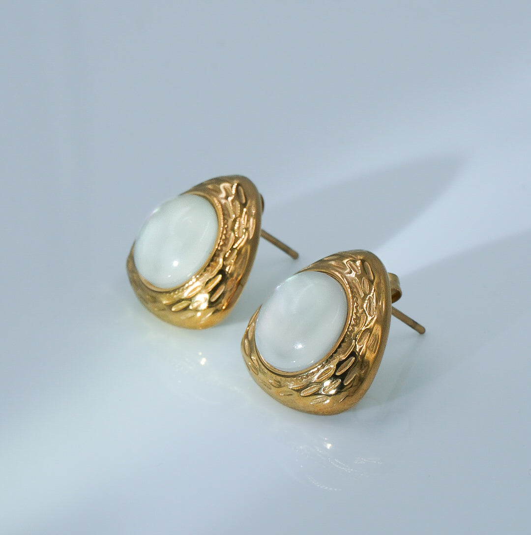 Elevate your accessory game with our stunning gold tone mother of pearl earrings. Crafted from durable stainless steel and beautifully plated with 18Kt gold, these earrings offer a luxurious look without compromising on quality. The iridescent mother of pearl adds a touch of elegance, making them perfect for both everyday wear and special occasions. Treat yourself or gift them to someone special—these earrings are sure to become a cherished favorite!