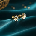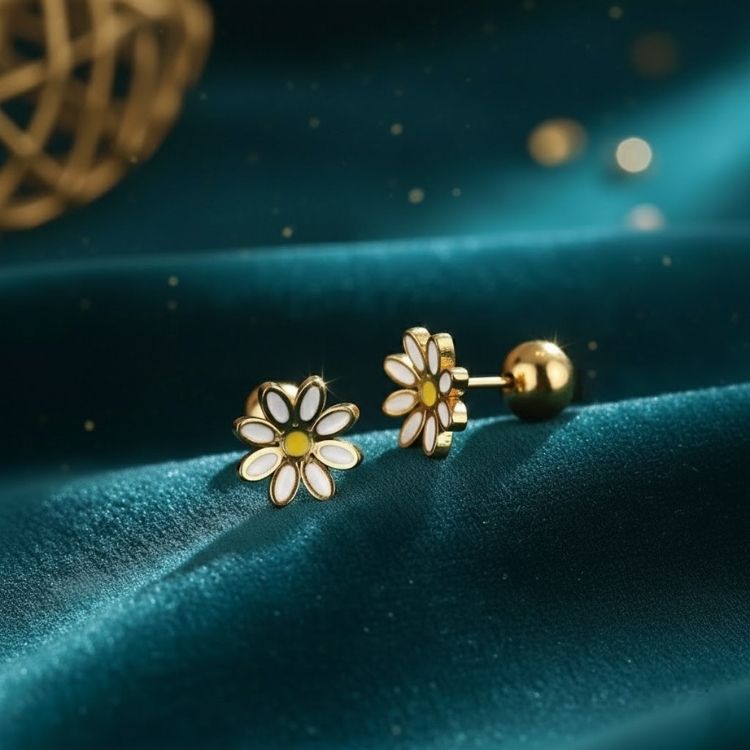 Elevate your accessory game with our exquisite gold plated flower stud earrings. Crafted from durable stainless steel and adorned with a luxurious 18Kt gold plating, these earrings offer a perfect blend of elegance and resilience. Their delicate floral design adds a touch of femininity to any outfit, making them ideal for both everyday wear and special occasions. Embrace timeless beauty and sophistication with these stunning earrings that are sure to become a staple in your jewelry collection.