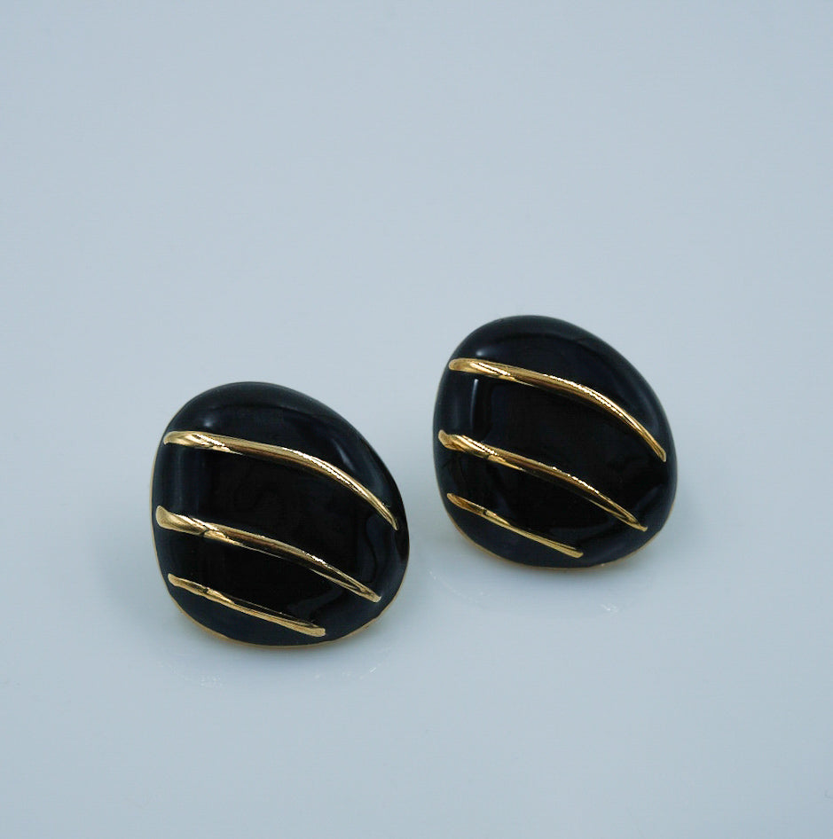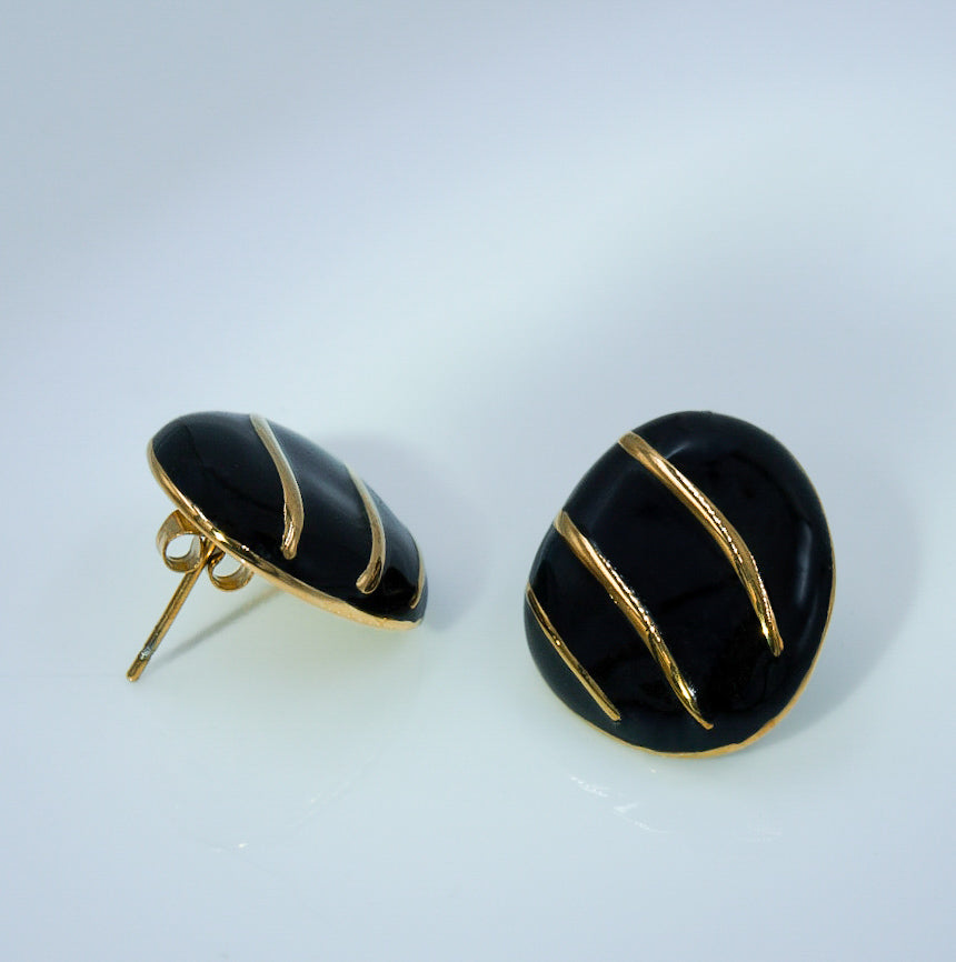 Elevate your accessory game with our stunning black enamel stud earrings, beautifully accented with luxurious 18Kt gold plating. Crafted from durable stainless steel, these earrings offer a perfect blend of elegance and resilience, making them ideal for both everyday wear and special occasions. Their timeless design ensures they will complement any outfit, adding a touch of sophistication to your look. Treat yourself or gift them to someone special—these earrings are a must-have addition to any jewelry collection!