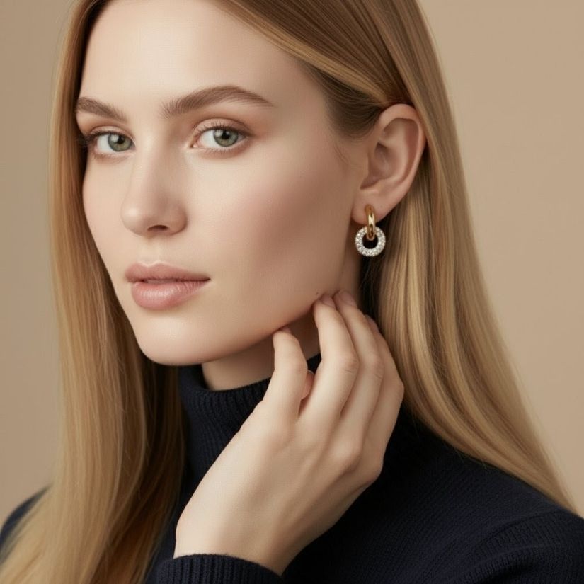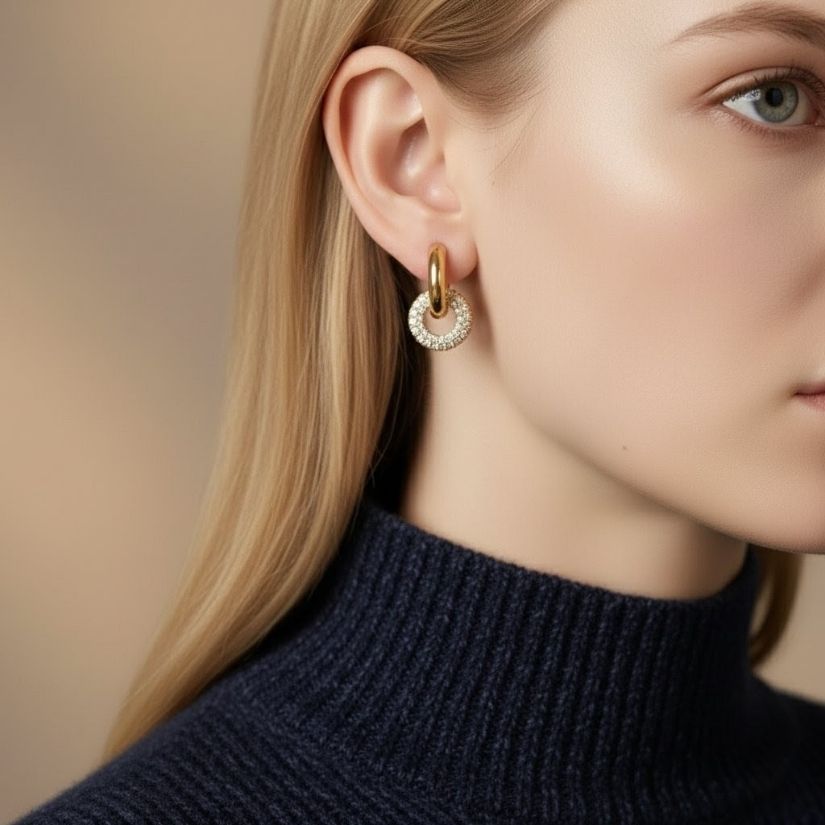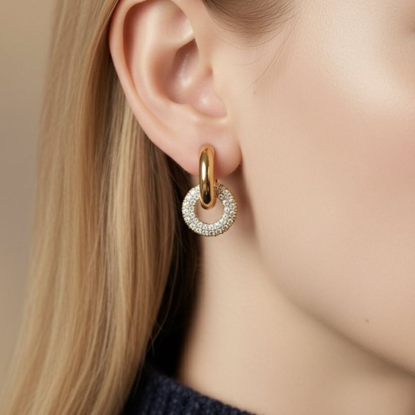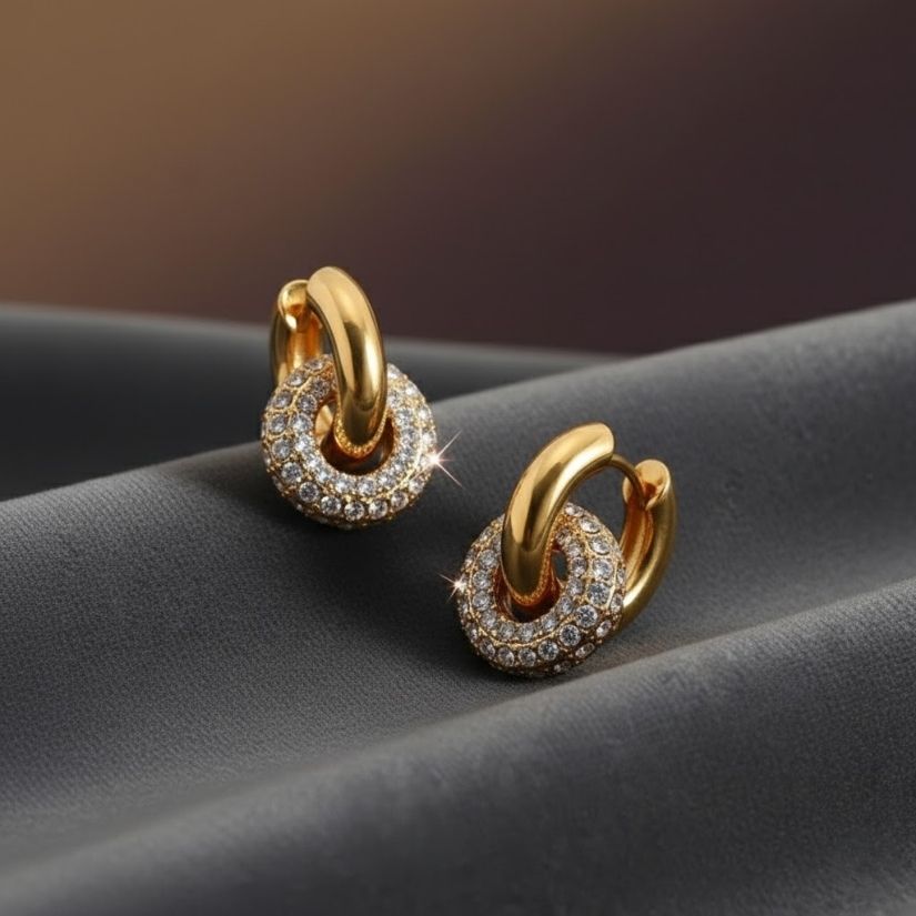 Elevate your accessory game with our stunning gold-plated hoop earrings, adorned with sparkling diamonds. Crafted from durable stainless steel and finished with luxurious 18Kt gold plating, these earrings offer a perfect blend of elegance and resilience. Their timeless design makes them versatile enough for both everyday wear and special occasions, ensuring you shine bright no matter the event. Treat yourself or gift them to someone special—these earrings are a must-have addition to any jewelry collection!