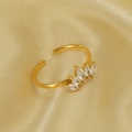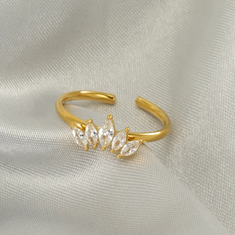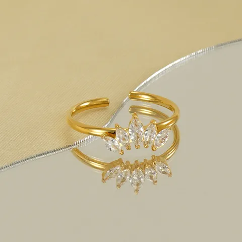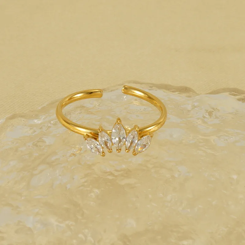 Elevate your jewelry collection with this stunning gold ring, featuring exquisite white stones that radiate elegance and sophistication. Crafted from durable stainless steel and expertly gold-plated, this ring is designed to resist tarnishing, ensuring it maintains its brilliant shine over time. Hypoallergenic and comfortable for everyday wear, it’s the perfect accessory for any occasion, making it a thoughtful gift for yourself or a loved one. Embrace timeless beauty and make a statement with this captivating piece.