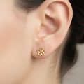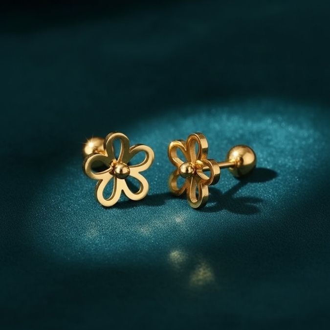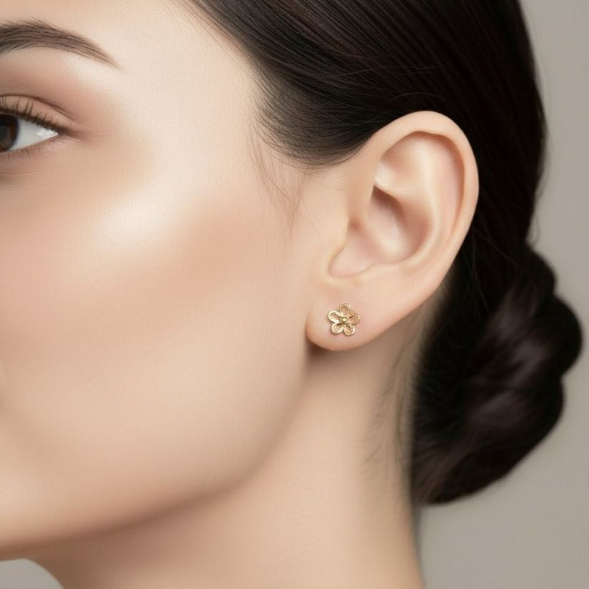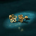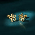 Elevate your accessory game with our stunning gold plated flower stud earrings. Crafted from durable stainless steel and adorned with luxurious 18Kt gold plating, these earrings offer a perfect blend of elegance and resilience. Their delicate floral design adds a touch of nature-inspired charm to any outfit, making them ideal for both everyday wear and special occasions. Treat yourself or surprise a loved one with these timeless pieces that effortlessly enhance any look.