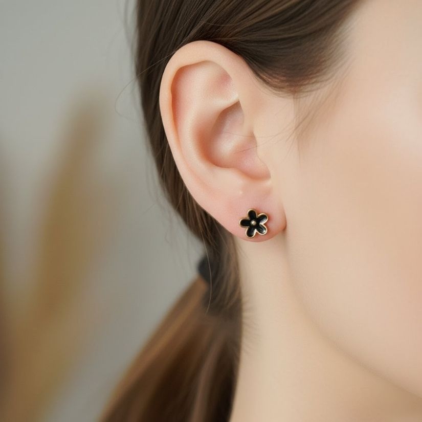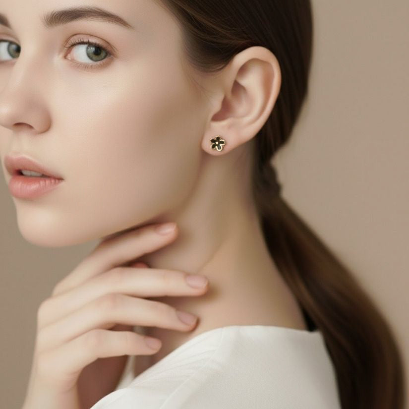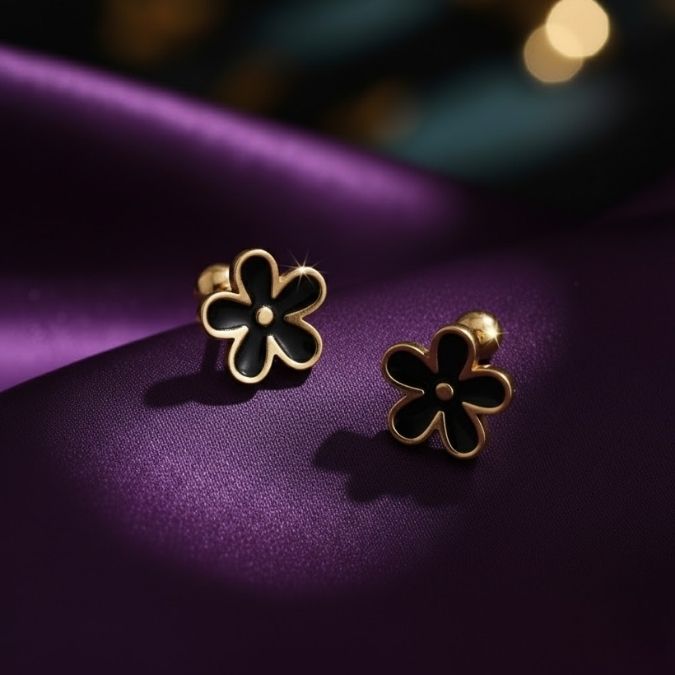 Elevate your accessory game with our stunning black and gold flower earrings, expertly crafted from durable stainless steel and adorned with luxurious 18Kt gold plating. These earrings combine elegance and modernity, making them the perfect statement piece for any occasion. Their intricate floral design adds a touch of sophistication, ensuring you stand out while enjoying the lasting quality and shine. Treat yourself or gift them to someone special and embrace the beauty of timeless style.