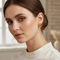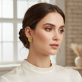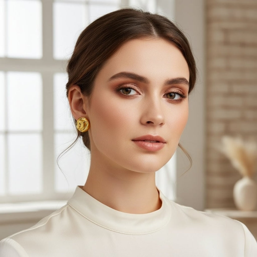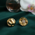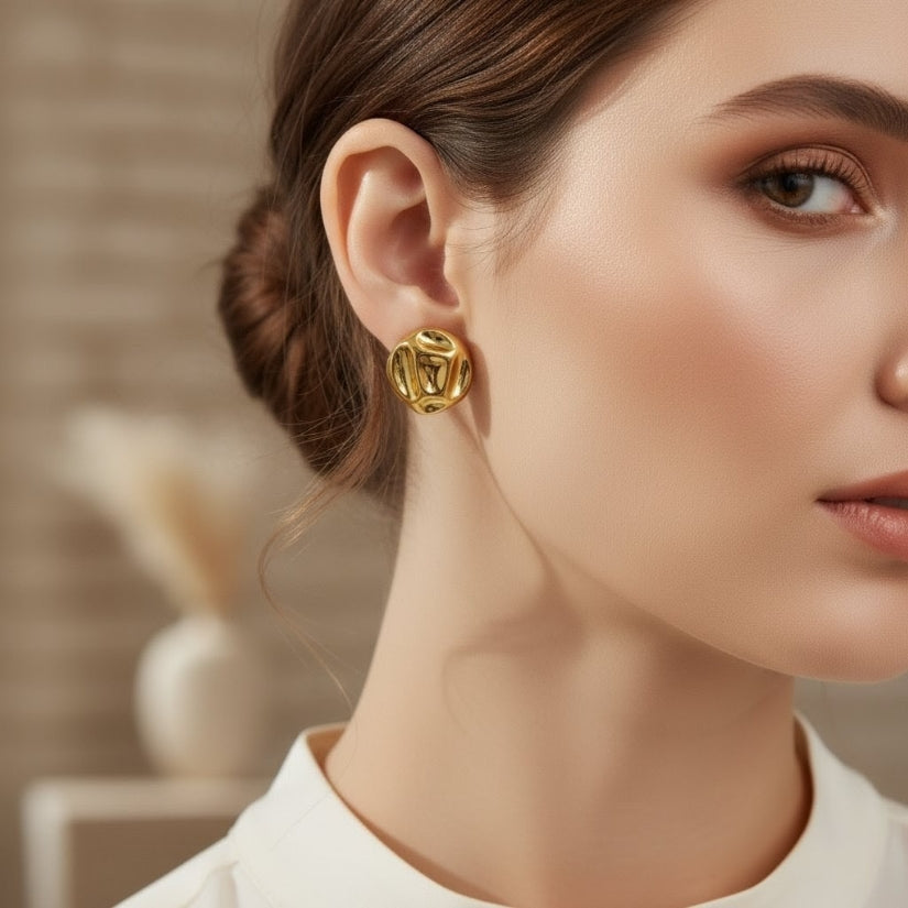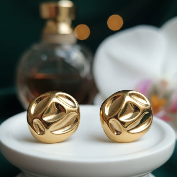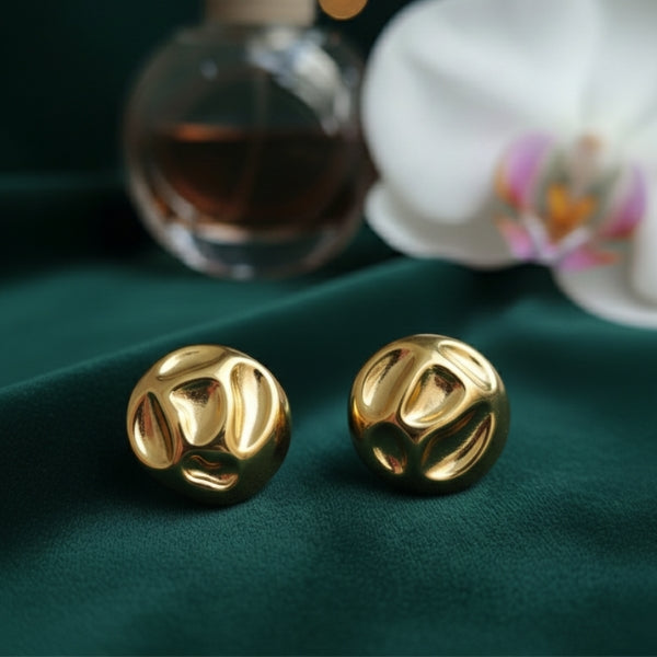 These stunning gold plated round stud wrinkled earrings are the perfect accessory to add a touch of elegance to any outfit. Crafted from durable stainless steel and adorned with a luxurious 18Kt gold plating, they offer a beautiful shine that lasts. Lightweight and comfortable, these earrings are ideal for everyday wear or special occasions, making them a versatile addition to your jewelry collection. Treat yourself or surprise a loved one with this timeless piece that effortlessly enhances any look.