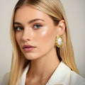 Elevate your accessory game with our stunning gold plated pearl stud earrings. Crafted from durable stainless steel and adorned with luxurious 18Kt gold plating, these earrings offer a perfect blend of elegance and resilience. The classic pearl design adds a touch of sophistication to any outfit, making them ideal for both everyday wear and special occasions. Treat yourself or gift them to someone special—these earrings are a timeless addition to any jewelry collection!