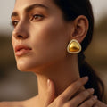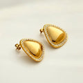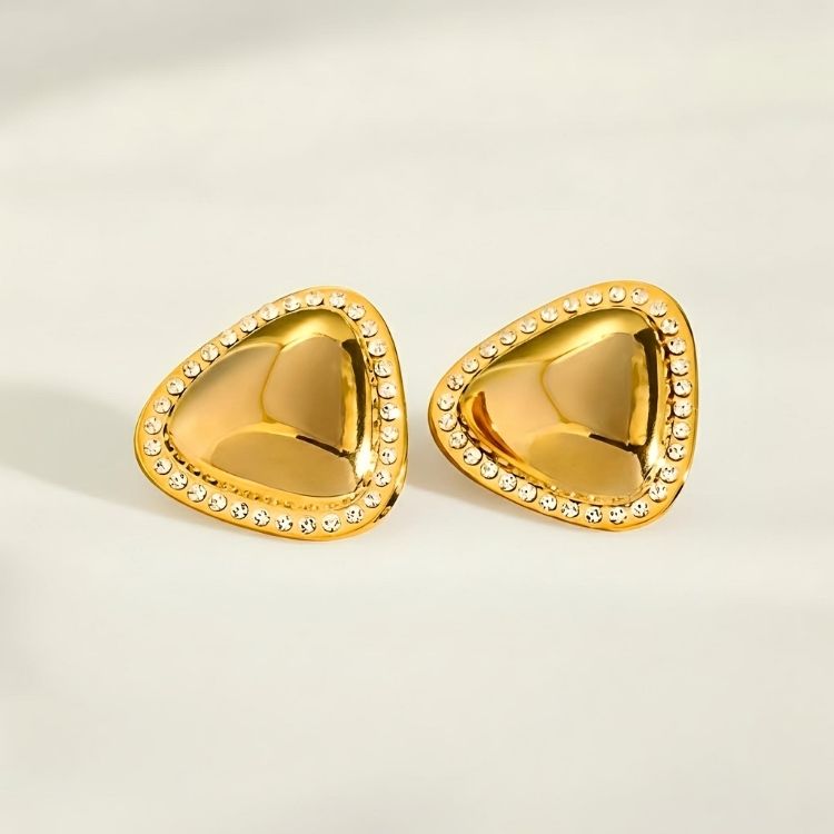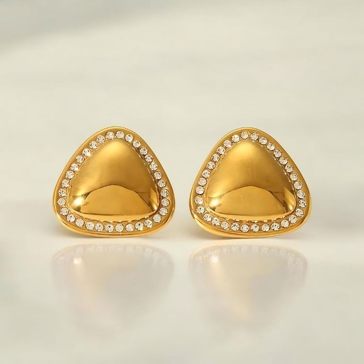 Indulge in the timeless elegance of these gold-tone earrings adorned with sparkling white stones. Crafted from durable stainless steel and finished with luxurious 18Kt gold plating, they offer a stunning shine that complements any outfit. Perfect for both everyday wear and special occasions, these earrings are designed to make you feel confident and chic. Treat yourself or surprise a loved one with a piece that effortlessly combines sophistication and style.