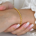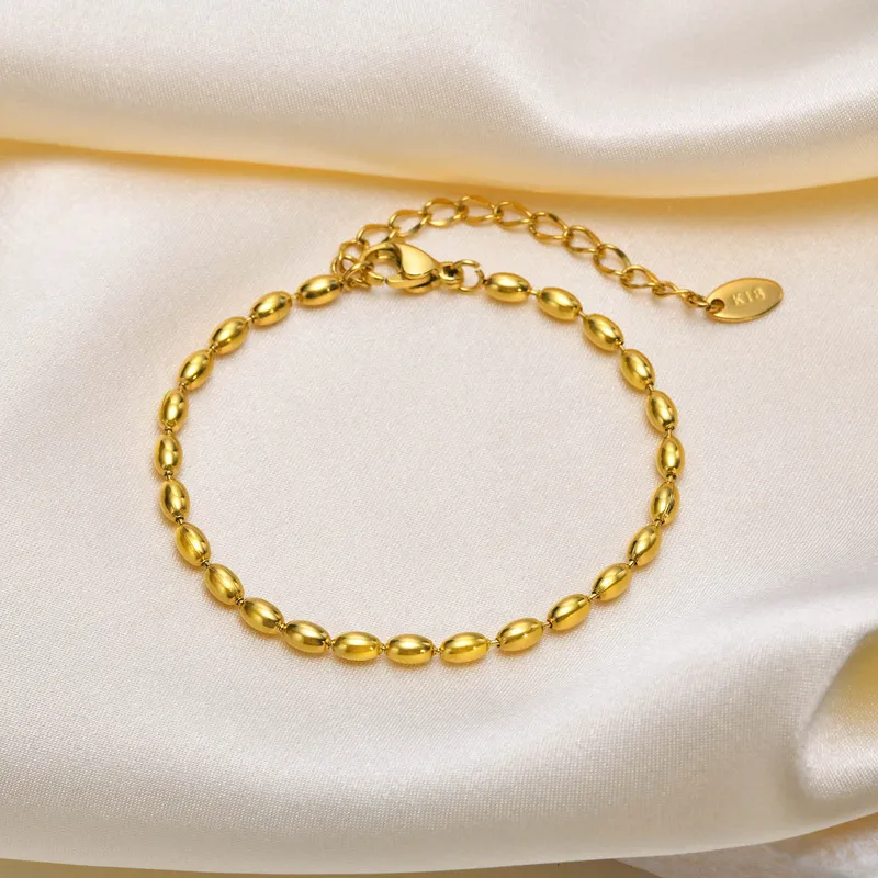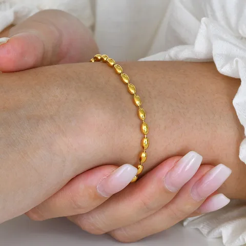 This stunning gold bracelet features a single strand of beautifully crafted gold beads, exuding elegance and sophistication. Made from durable stainless steel with luxurious 18Kt gold plating, it offers both style and longevity, making it the perfect accessory for any occasion. Whether you're dressing up for a night out or adding a touch of glamour to your everyday look, this bracelet is sure to turn heads and complement your unique style.